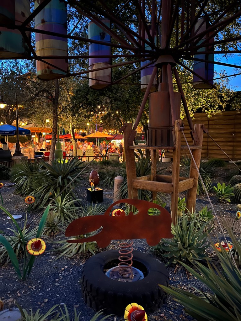 Fillmore’s taste-in is also in Cars land. Hey, It’s Mater! Mcqueen & Mater are both in Cars land! Mater is in the bushes.