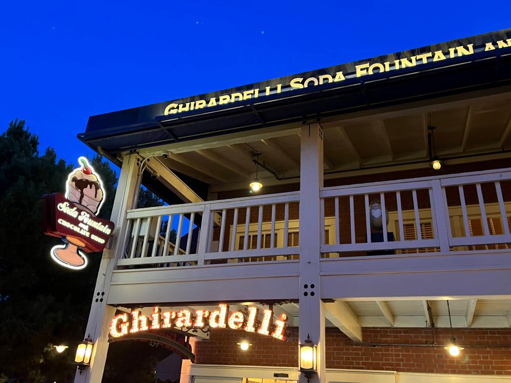 Ghirardelli Soda fountain & Chocolate shop is in Pacific Wharf. It’s further down the alley. Thumper is up there! He is on the top balcony.