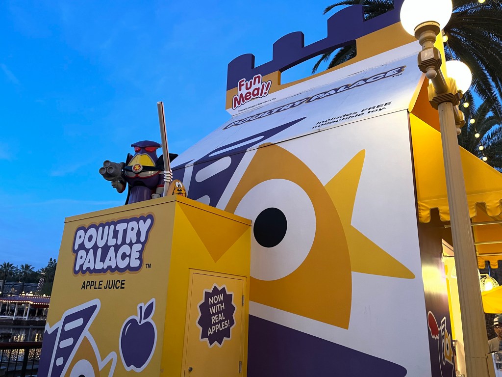 Poultry Palace is next to Toy Story Midway Mania! Look on the top! Hey, it’s Pluto! Wow, I guess he likes his Chicken! He’s next to Zurg!