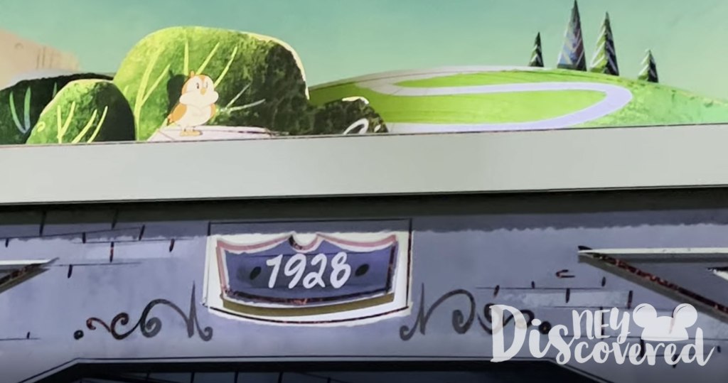 15. When we get on you’ll see a bird on top of a bridge. Then you’ll see a sign under it, it says 1928. Hmm… does that year sound familiar? Well, 1928 is the year Mickey and Minnie first debuted in Steamboat Willie, 5 years after Disney was made!