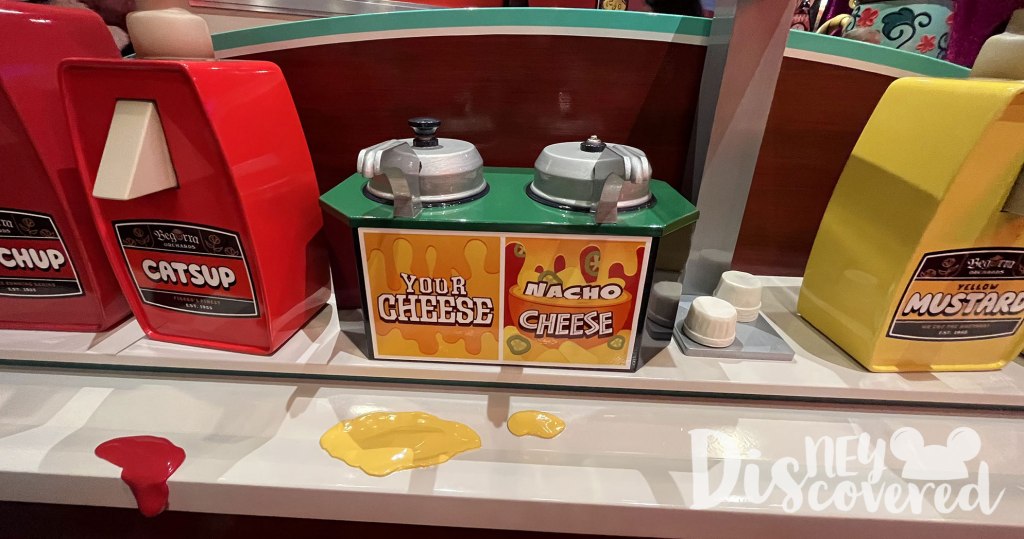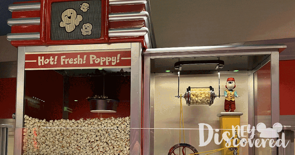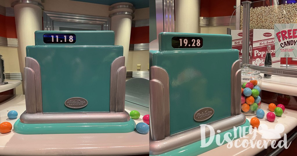 6. When you enter the snack room you’ll see some popcorn, a cashier, and some candy. Did you know that the two cash registers have specific numbers on them? The first register says $11.18 and the second one says 19.28. Put them together and you’ll get November 18, 1928, the day that Steamboat Willie released.
