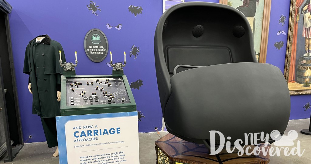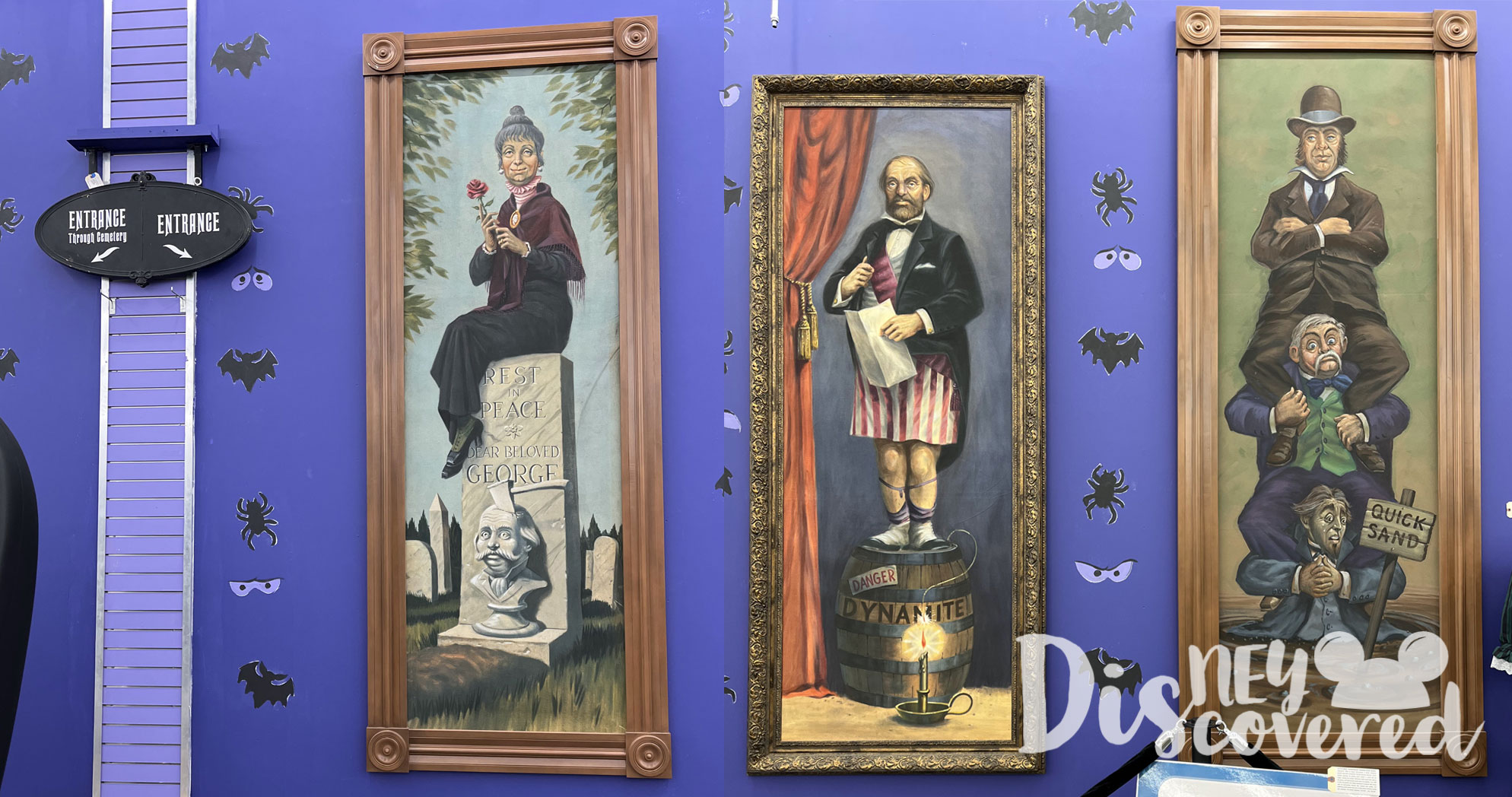 This Doom Buggy’s door is still fully functional and is an actual vehicle. This section also includes 3 of the original Haunted Mansion stretching portraits and the 3 Hitchhiking Ghosts.