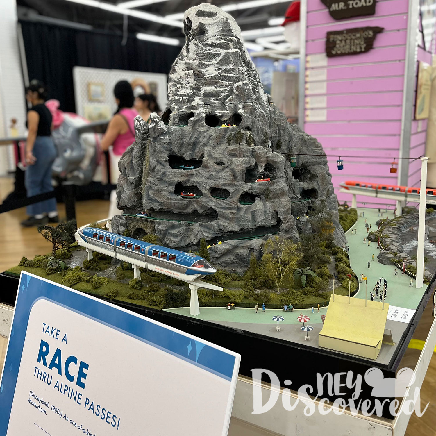 There are a couple detailed models that really stood out. The one of Matterhorn showed bobsleds and also had the Monorail and Skyway To Tomorrowland going through the mountain.