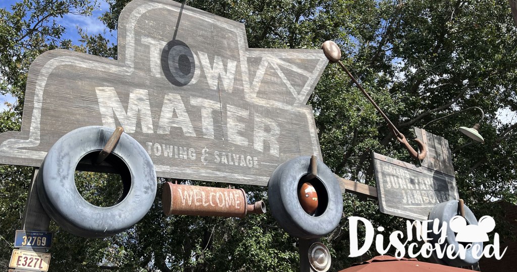 This one is the final one on our egg hunt. If you look at the sign, you will see Tow Mater inside a tire.