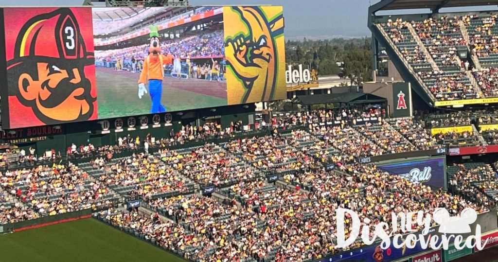 Goofy threw out the ceremonial first pitch, Mickey Mouse and the gang danced with the Savannah Bananas to the Mickey Mouse Clubhouse “Hot Dog” song before a pitch, the Firefighters (the other team) did a dance to “Let’s Get Down To Business” from Mulan, and the Great Hambino from the baseball movie Sandlot (now on Disney+) made a surprise appearance as he came out to bat.